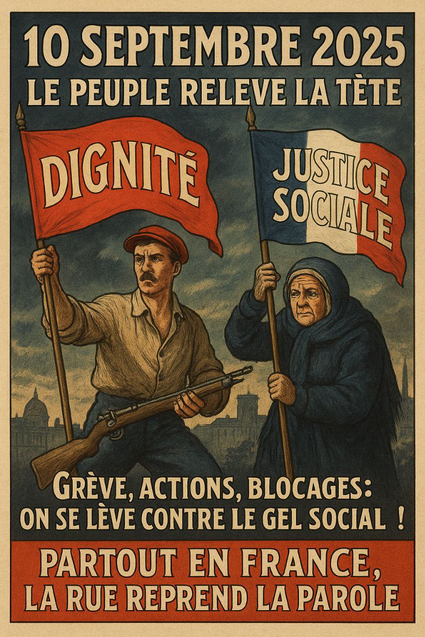 Ces visuels libres sont faits pour être partagés: réseaux sociaux, messageries, affichage local… Le 10 septembre 2025 n'est que le début d'une mobilisation sans précédent. Ne passe pas à côté de l'Histoire ! Chaque partage compte pour que le peuple se soulève. 💡 Astuce : clique droit sur un visuel, puis sur "Enregistrer l'image sous" pour le télécharger.